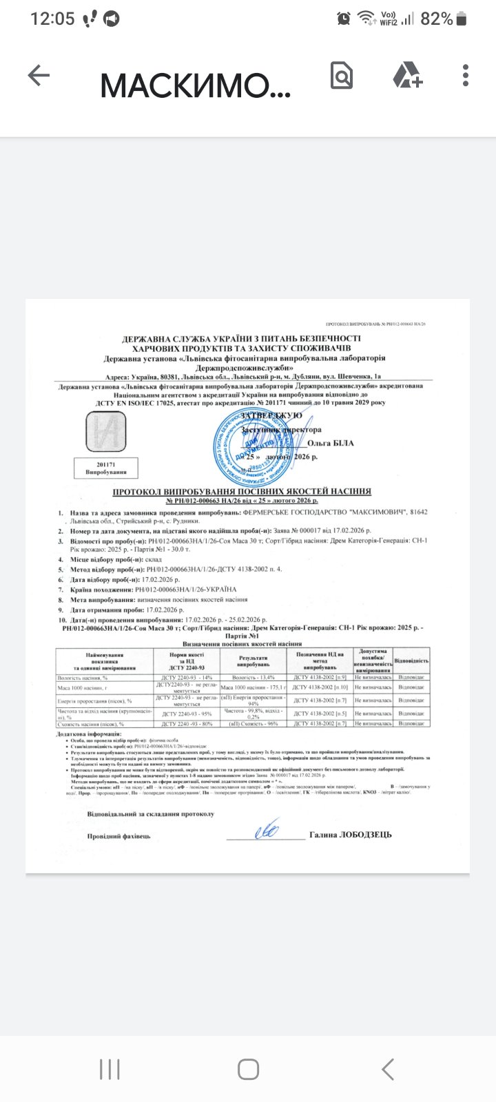 Маса 1000 насінин: 175,1г